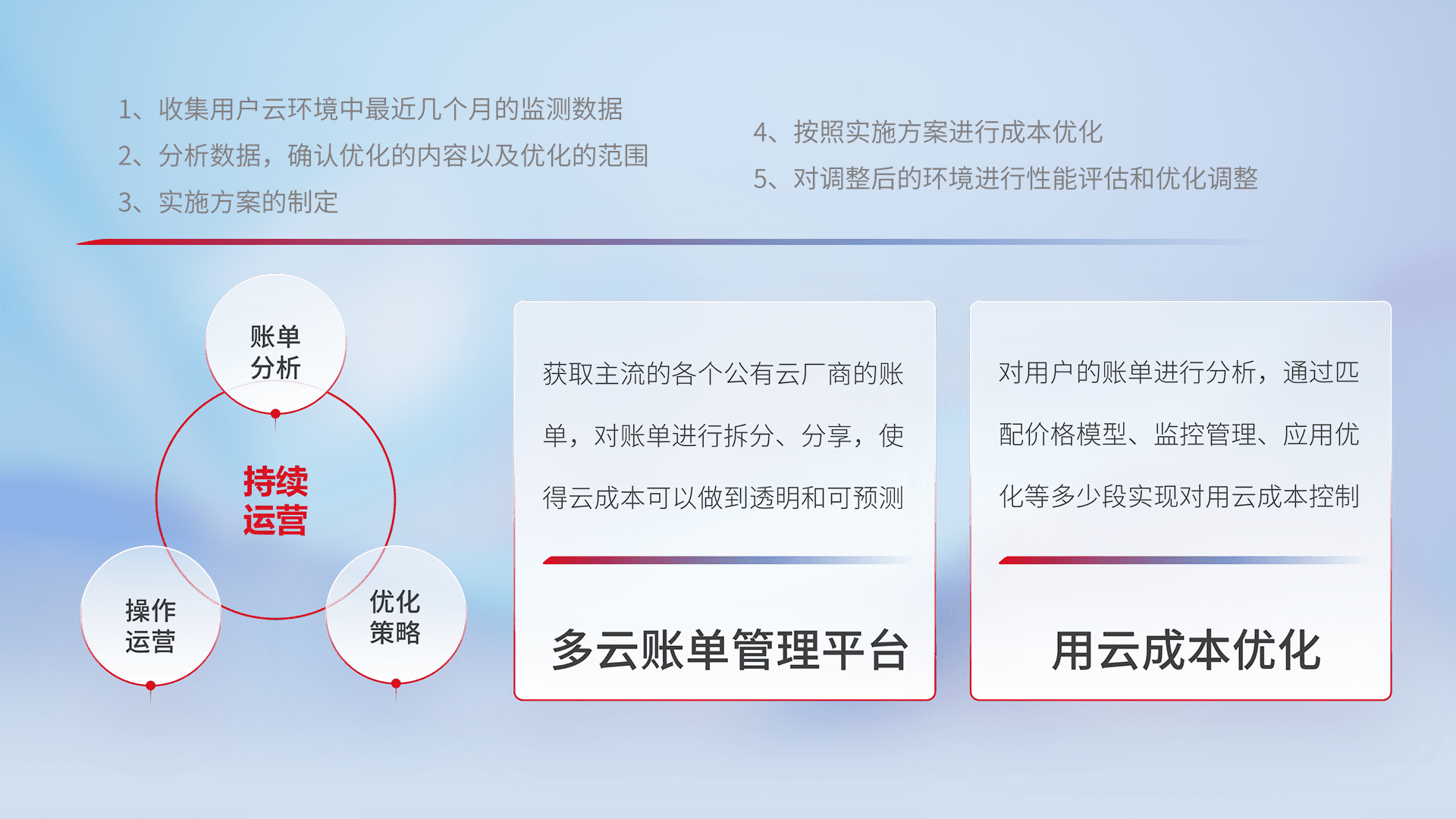 监控业务系统资源开销,,,,对资源的消耗精确计量,,,实现费用的透明化管理,,,不断提升资源使用率,,,调整资源购买方式,,,,降低资源费用成本,,用云成本可预测、、、用云费用可优化,,云资源配额有据可依。。